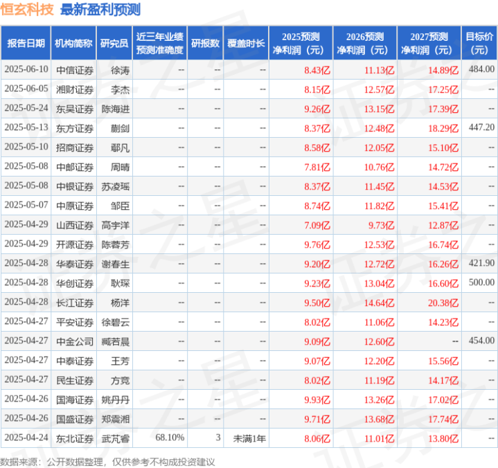 最新盈利预测明细如下: